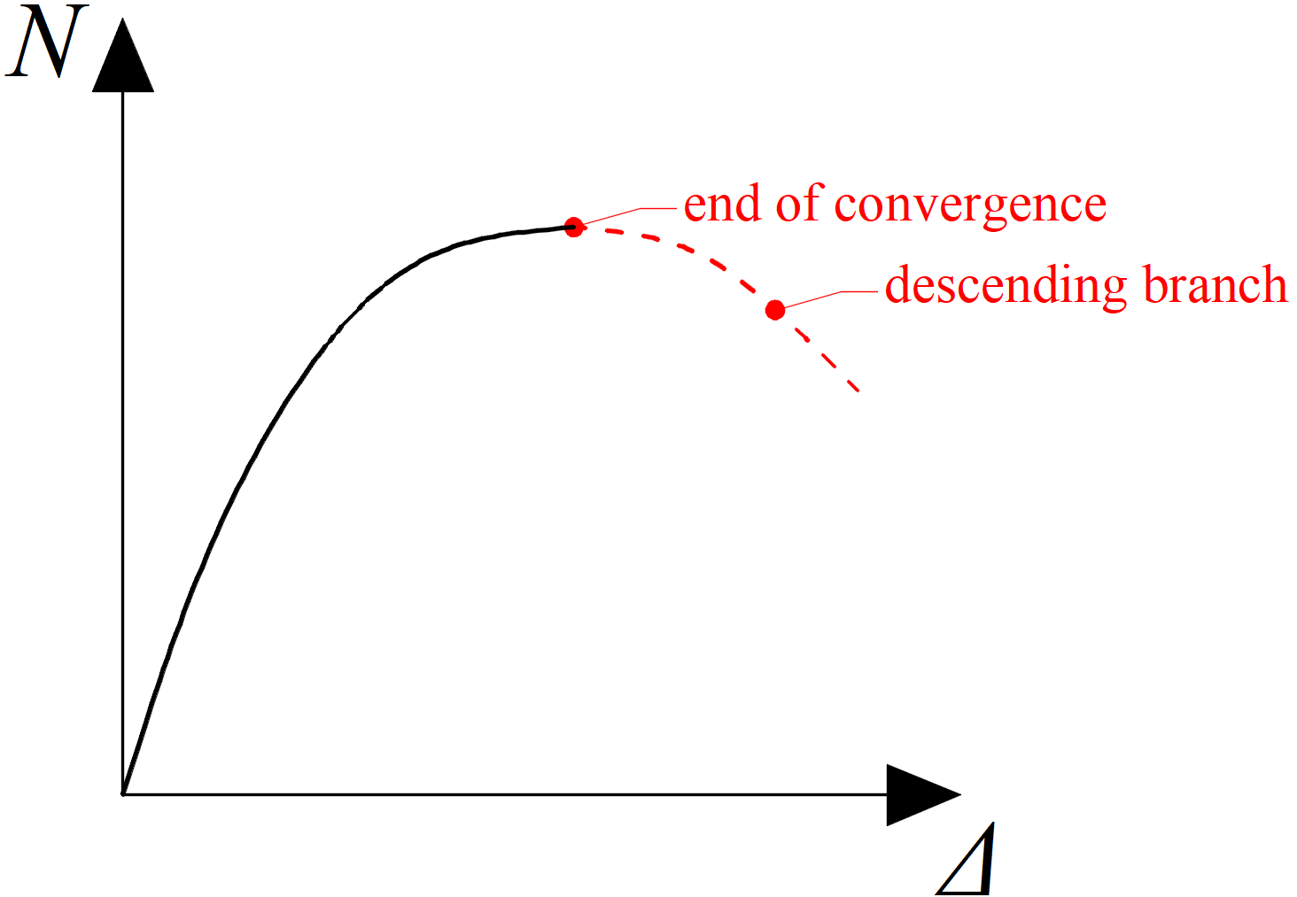 Ultimate limit state may be reached by attainment of a limiting value of the principal membrane strain – recommended as 5 % or attainment of the maximum load for members susceptible to buckling. Maximum load is reached when the solver stops converging (because the model is loaded by forces and not by displacements). End of convergence means that no load increment may be applied to the model, and the analysis may stop below 100 % of defined load. Descending branch of the load-deformation diagram cannot be captured.