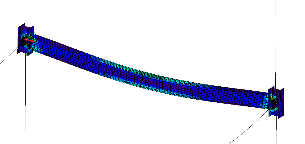 The buckling mode shape also provides us with information on whether the member fails in flexural buckling around weaker or stronger axis, torsional buckling (axially loaded columns) or lateral-torsional buckling (bent beams) or local buckling (members with slender plates). Note that for complicated structures, buckling mode shapes may combine the buckling of several members with various shapes. Also, if a whole frame is modeled, the frame will buckle as a whole and not columns and the girder separately.
