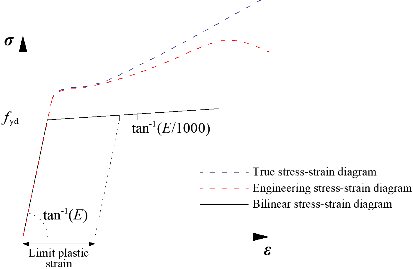 Material diagrams of steel in numerical models