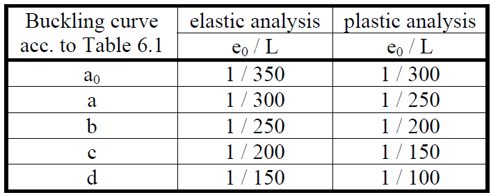 Design values of initial local bow imperfections (from EN 1993-1-1 – Table 5.1)