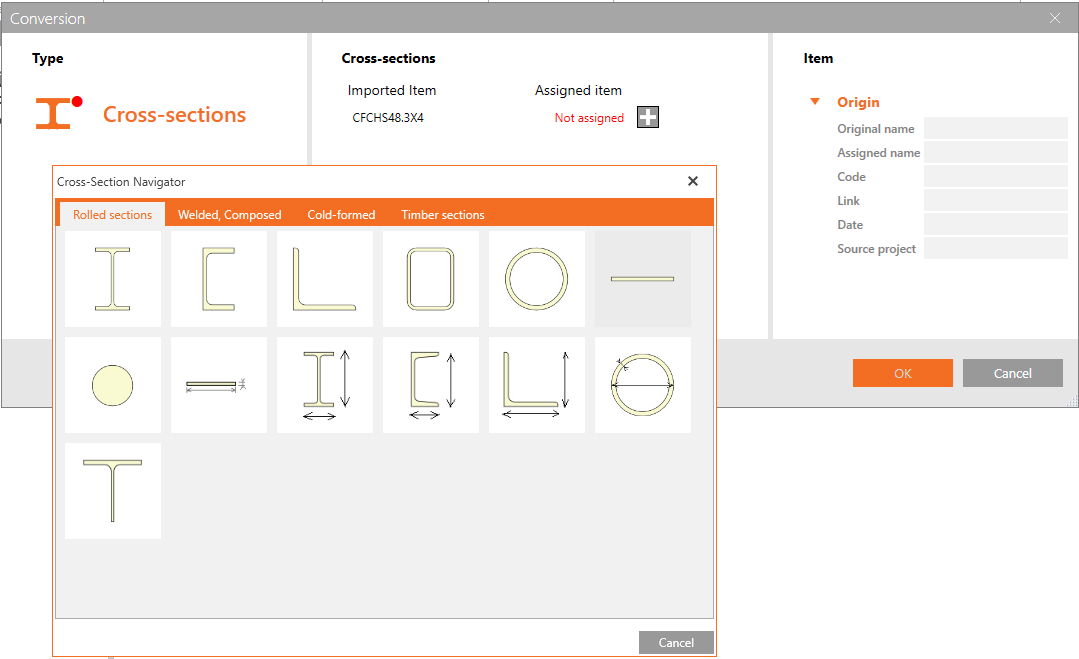 In previous versions, looking for your particular cross-section could be slightly unclear as the user had to scroll down the long list of items. As an improvement of usability, we edit this conversion table to be very similar to what is well proven in the Connection app. Now you can select from the set of tiles with distinguished cross-section types.