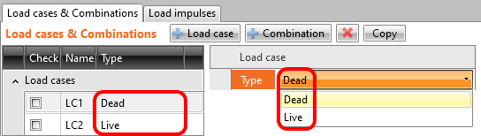 Since the ACI code has different terminology, we redefined the load case types. Dead load and Live load replaced Permanent and Variable.