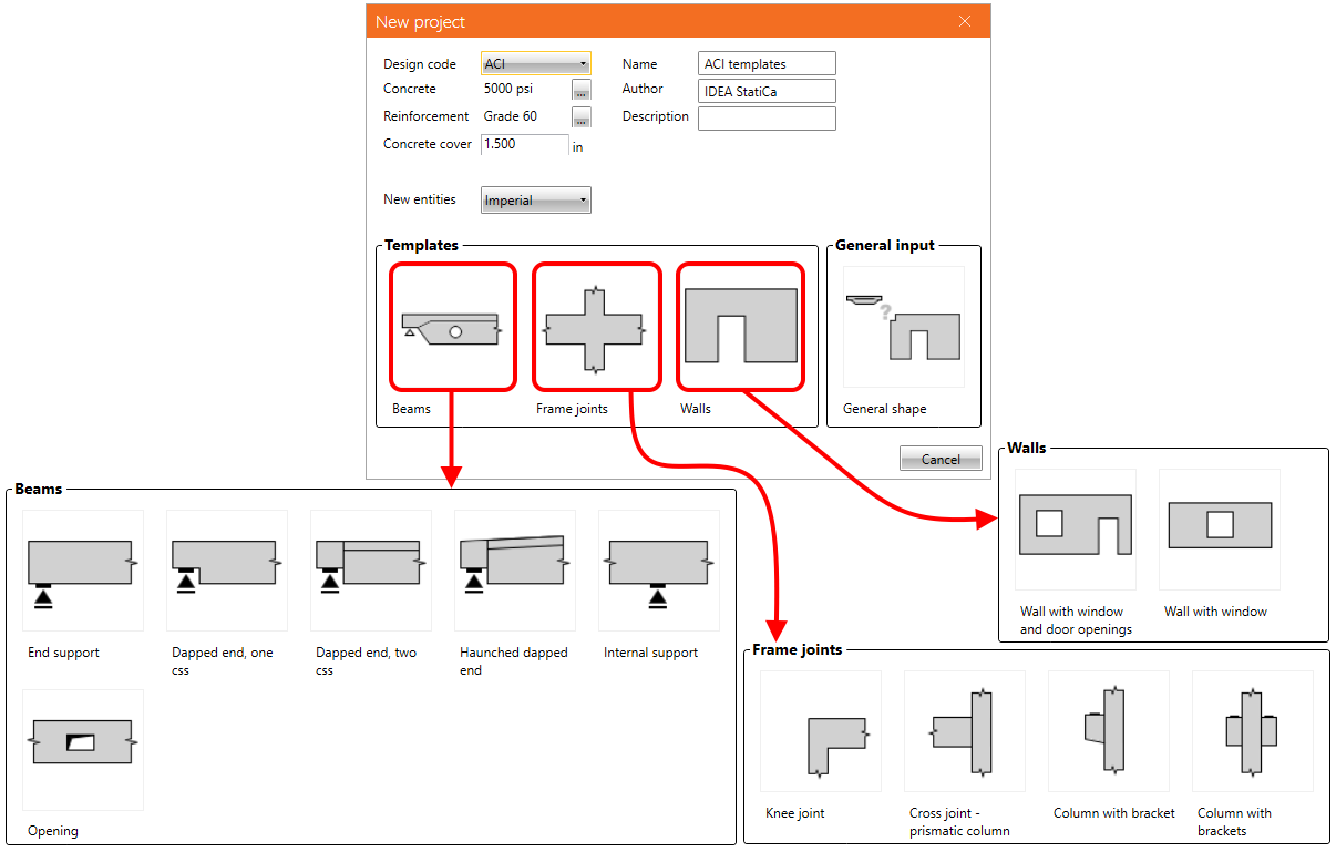 In a New project window, you can see three sets of new templates – Beams, Frame joints, and Walls.