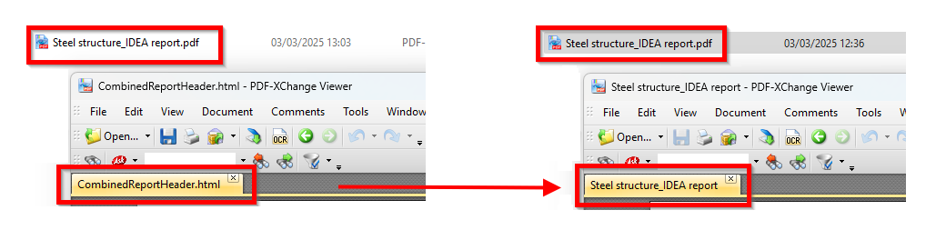 The title of the PDF document is changed from a general one "CombinedReportHeader.html", which is not specific and causes confusion in cases where more reports are opened. The new PDF title respects the name of the PDF file/project.