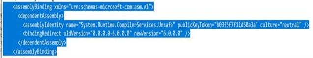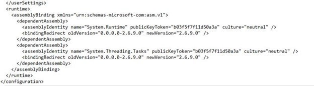 This is what the file should look like (its bottom part) after the assembly binding is properly deleted: