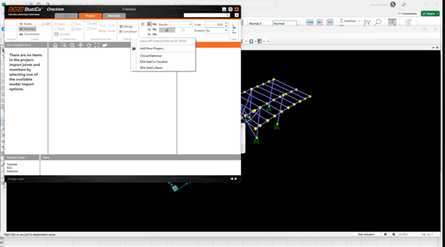 The new patch of SAP2000 24.1.0  does not work with the latest IDEA 22.1. Once you start Checkbot from the menu, it looks like this, and nothing can be done/clicked.