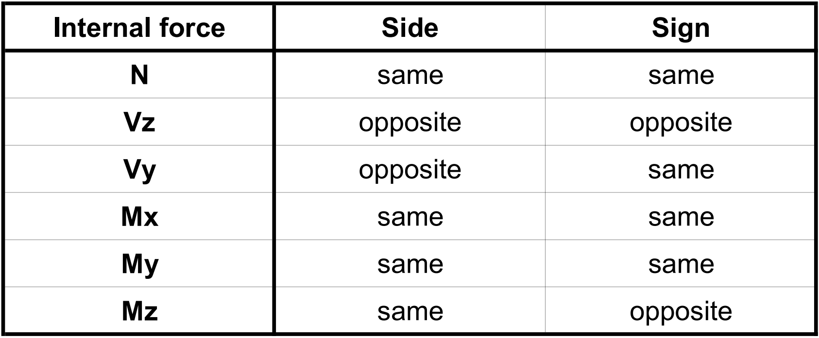 Limitation: Sign convention for internal forces