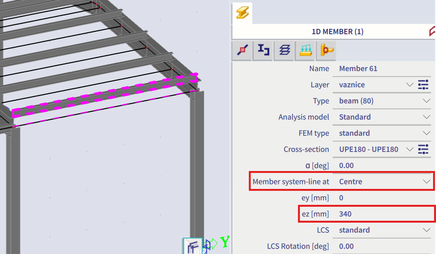 Limitation: Eccentricity modelled using the "member system-line at" is not imported in version 25.0 and older. From the version 25.1.0, this limitation has been removed and members are imported with the defined system line.