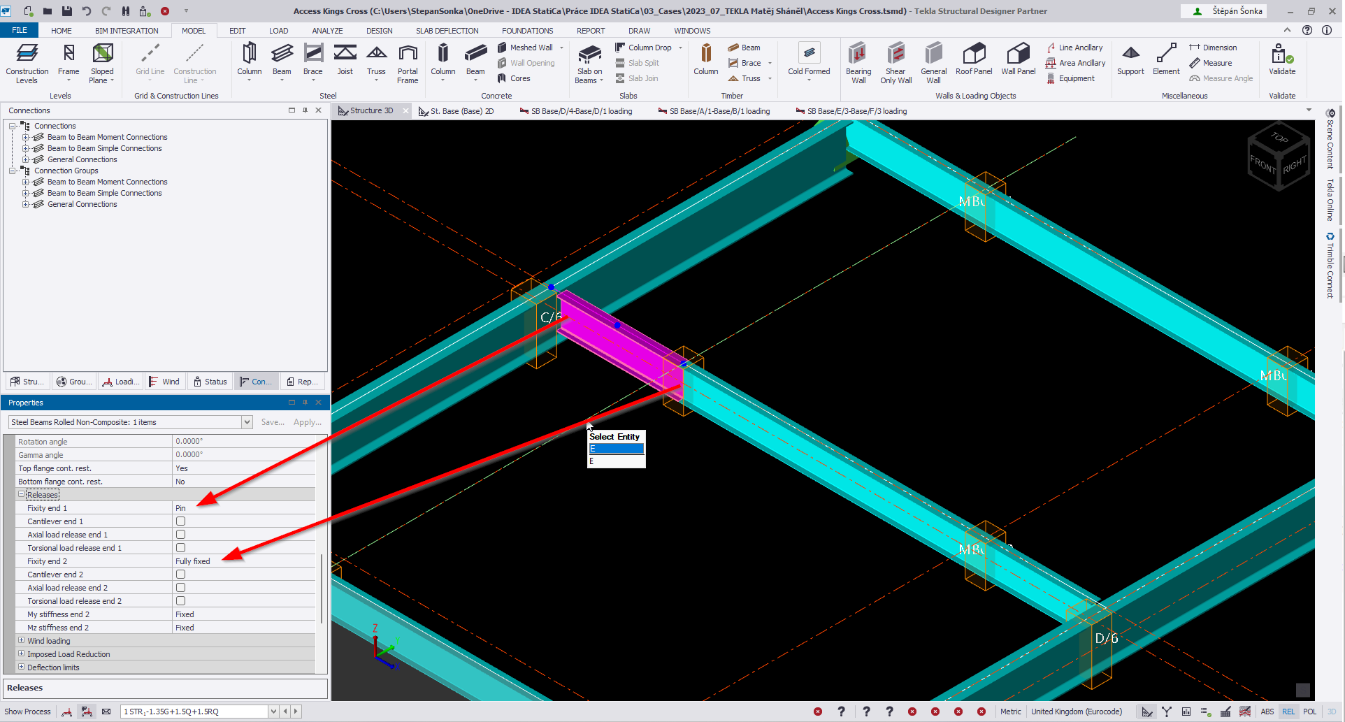 Limitation: In IDEA StatiCa, a connection can only be designed only between two members.  In Tekla Structural Designer it is possible to define a connection between spans on one member.  A connection defined between spans in Tekla Structural Designer cannot be imported and designed in the IDEA StatiCa environment.  The import will end up as an empty scene in Checkbot.