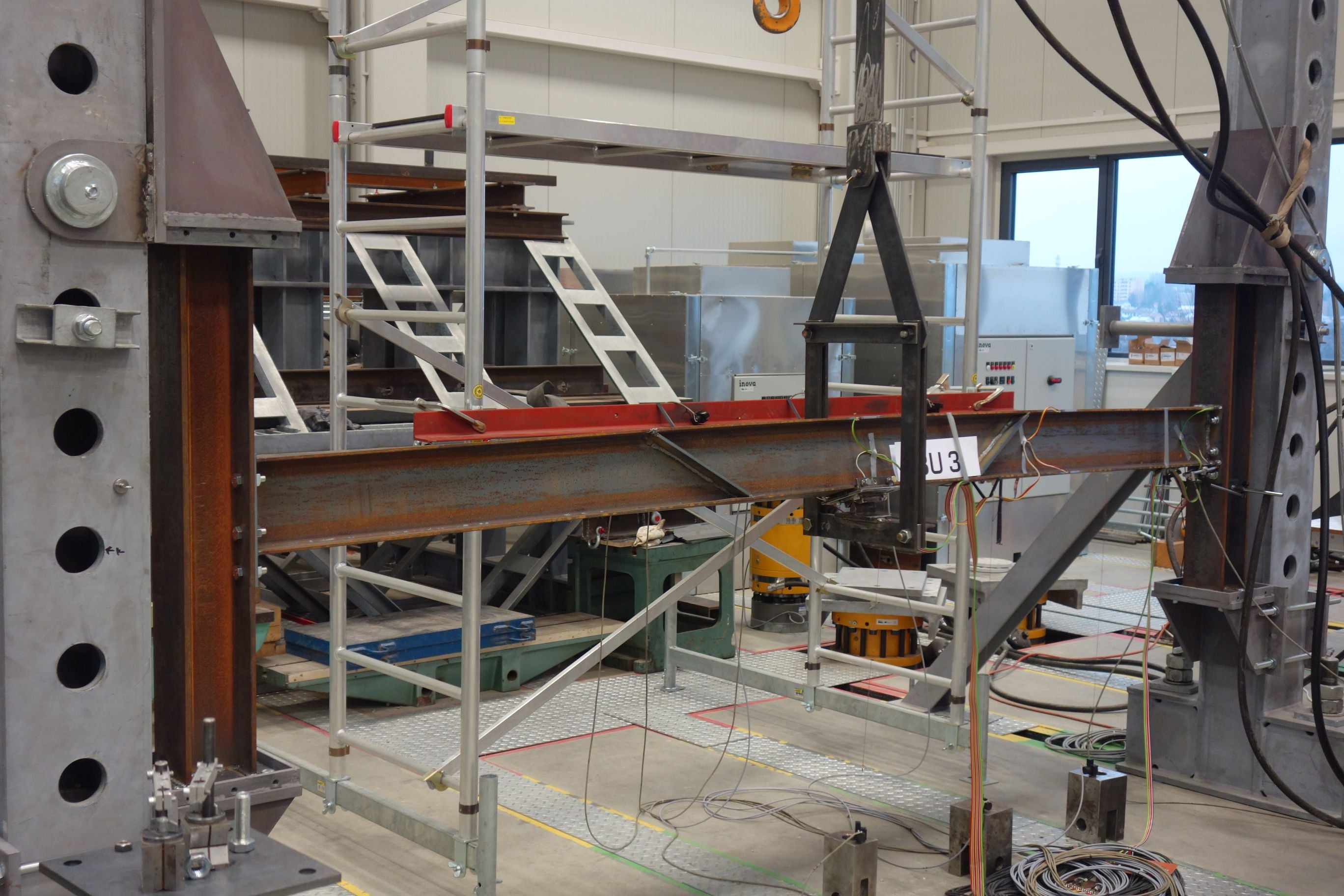 I-section beam stiffened by inclined transverse stiffeners is transversally loaded by a point force at mid-span. The results of linear buckling (LBA) and geometrically and materially nonlinear analysis with imperfections (GMNIA) are compared.