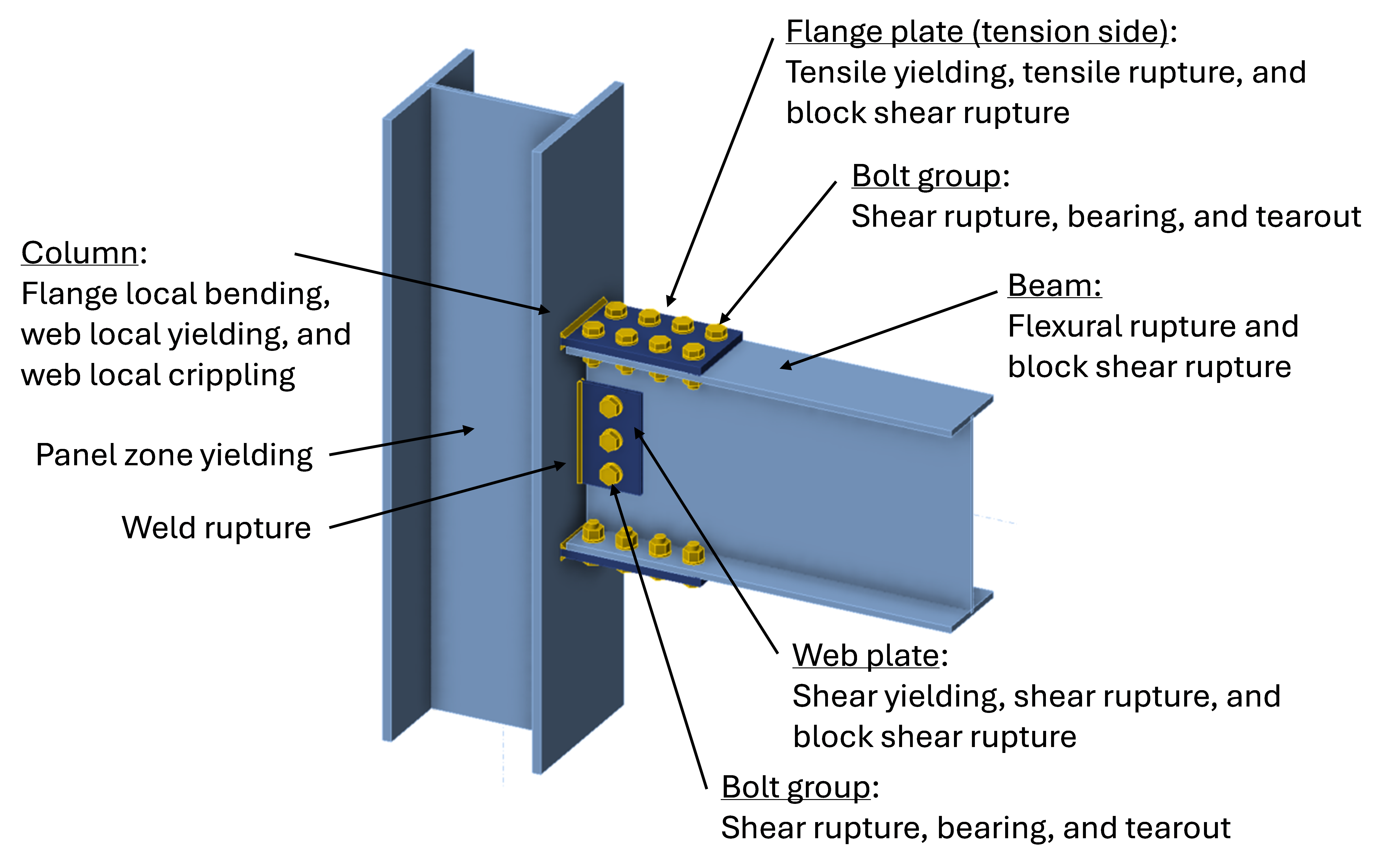 Limit states for the connection include those shown in the figure below: