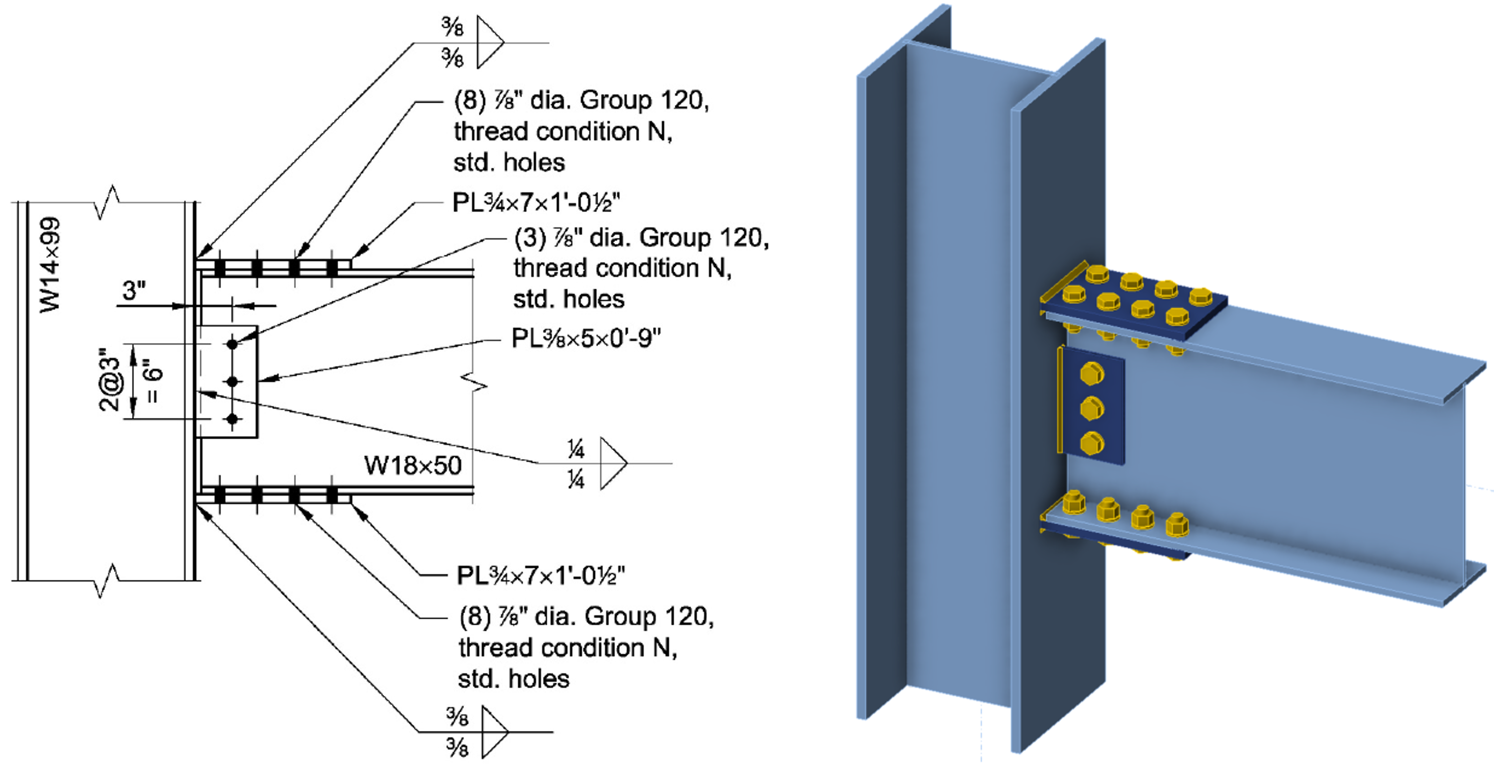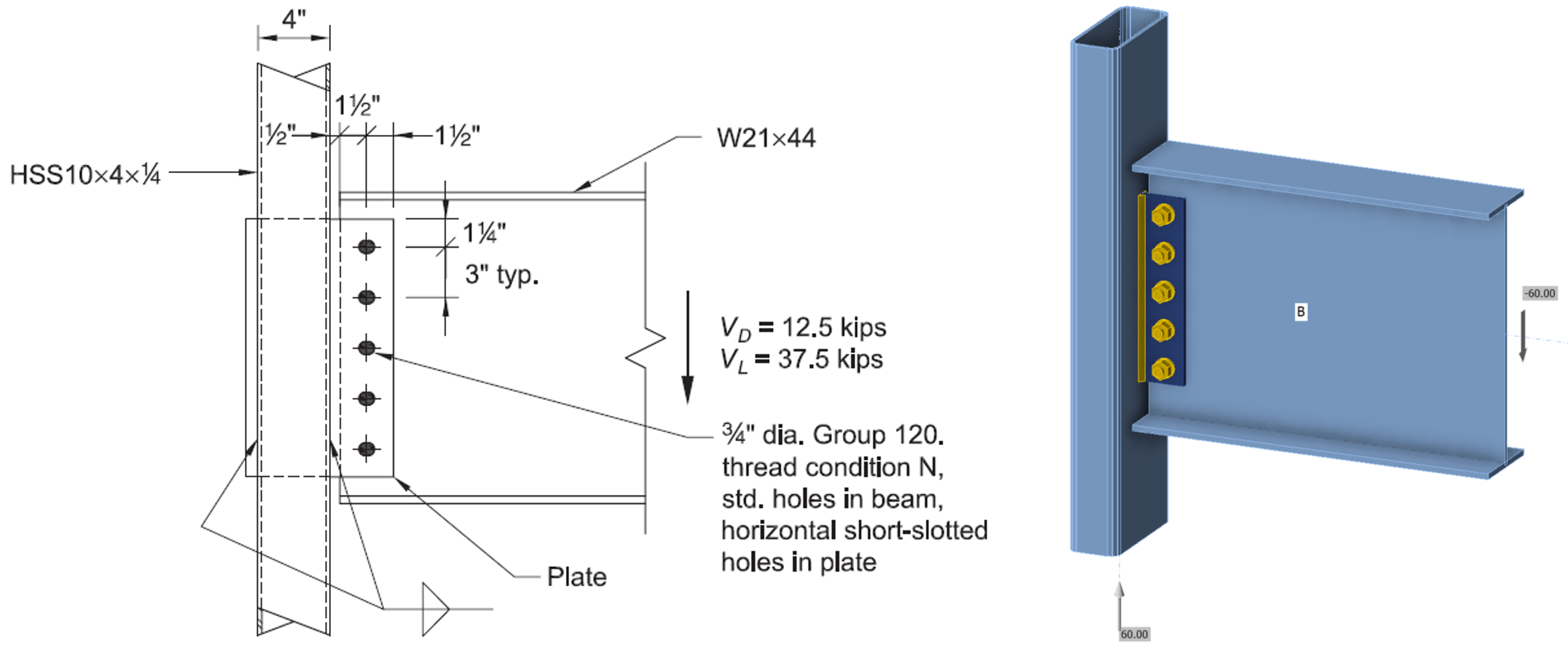 Connection 3 based on AISC Design Examples V16.0, Example II.D-1