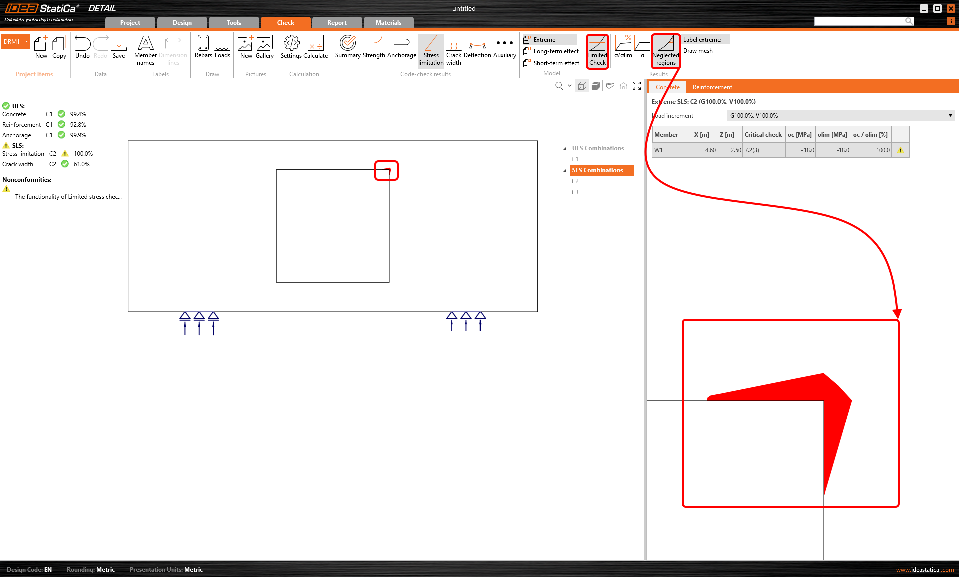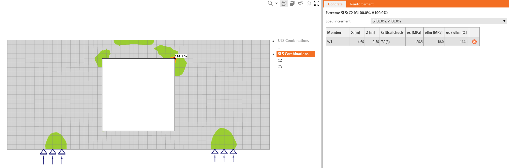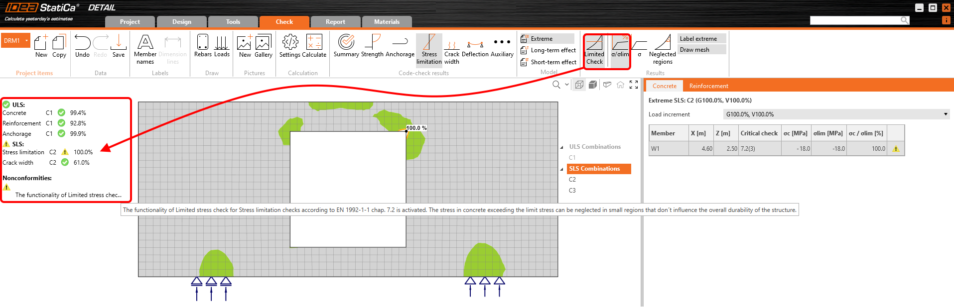 Now, let's explain how the feature works. There is a wall with an opening with an unsatisfactory stress limitation check in the right sharp corner.