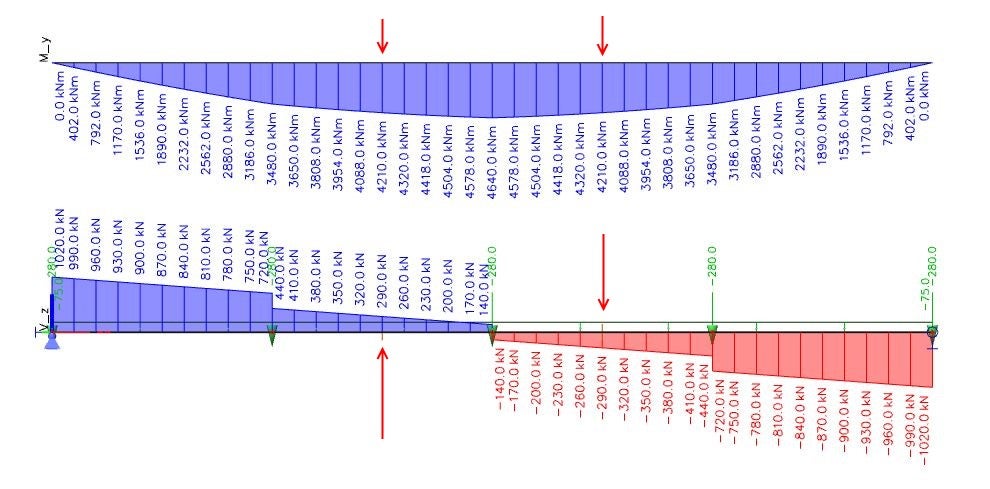 • The model is in equilibrium after export if the internal forces (N, V, M) are added at the ends of related members.