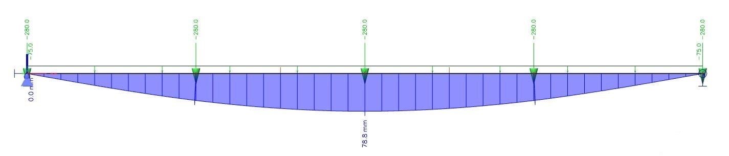 The correct boundary conditions (complying with the global model) but without any internal forces input at the end of related members (Fig. 15) cause the triangular shape of bending moments (Fig. 16). From the internal forces are evidently seen that this behavior does not comply with the global model behavior. One interesting phenom regarding the internal forces on the diaphragm in Fig. 16 can be observed - the internal forces are the same as in the model in the first model (Fig. 06). So we can conclude that if the boundary conditions are correctly defined, and any internal forces at the end of related members are applied, MNA on the indirectly connected members is performed correctly.