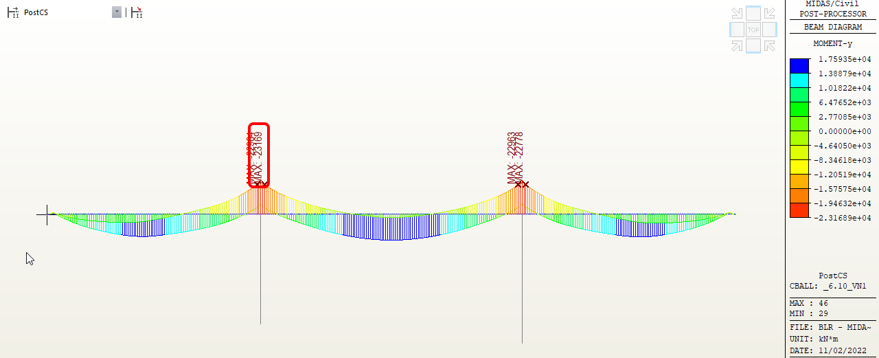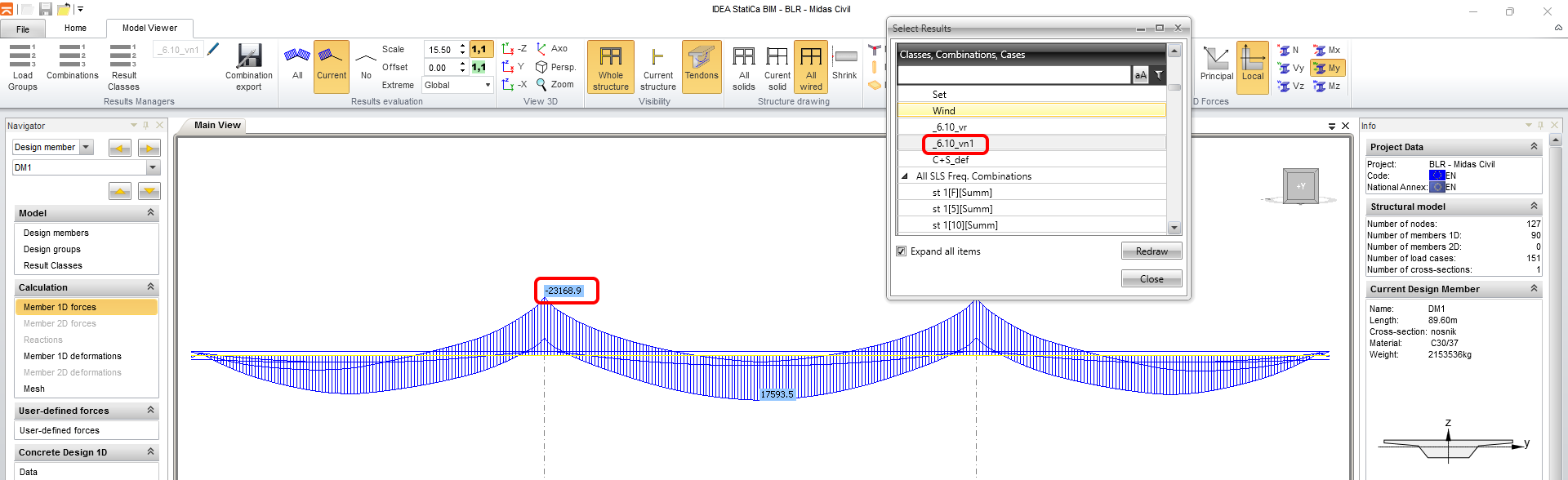 In the next step, check whether the internal forces have been imported correctly by comparing the envelope of bending moments from the combination ULS _6.10_vn1. You can set Scale 15.5 for better visualization.