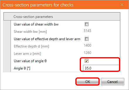 In the user settings tab, enter the user value of the diagonals angle to 35°, and click OK. Close the reinforcement editor to complete the A-A types setting. Similarly, use the reinforcement template for type B-B.