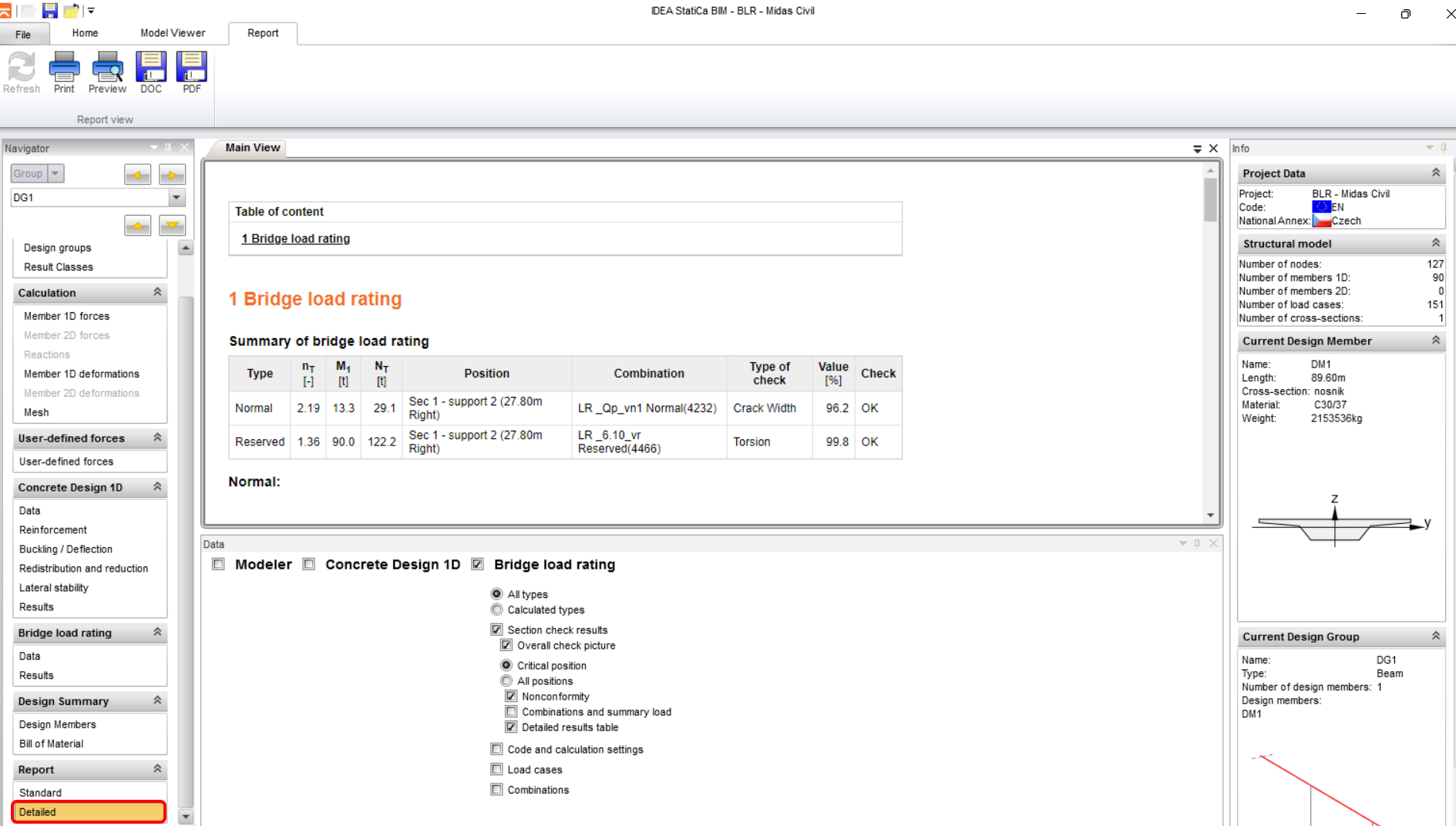 By clicking the Detailed button in the upper ribbon you will switch to the RCS program, where you can view the detailed checks of individual limit states.