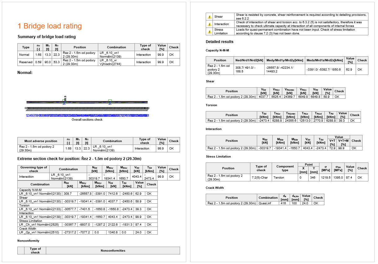 Subsequently, the analysis is carried out at a distance of 1.5 m from the support, including consideration of shear and M-V-T (moment-shear-torsion) interaction.