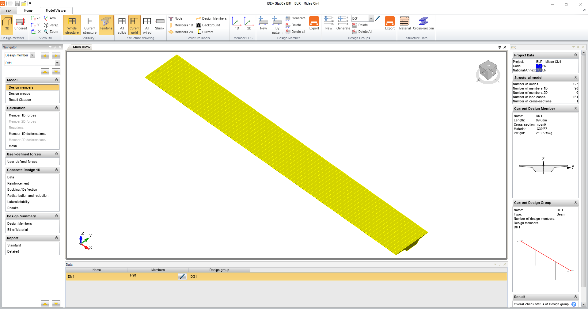 In this tutorial, we will show how to import a bridge model from Midas Civil into IDEA StatiCa and calculate load capacity of the bridge. Moving loads defined by Czech design code ČSN 73 6222 are used in this tutorial, however, despite the code used, method implemented in the BIM link is universal.