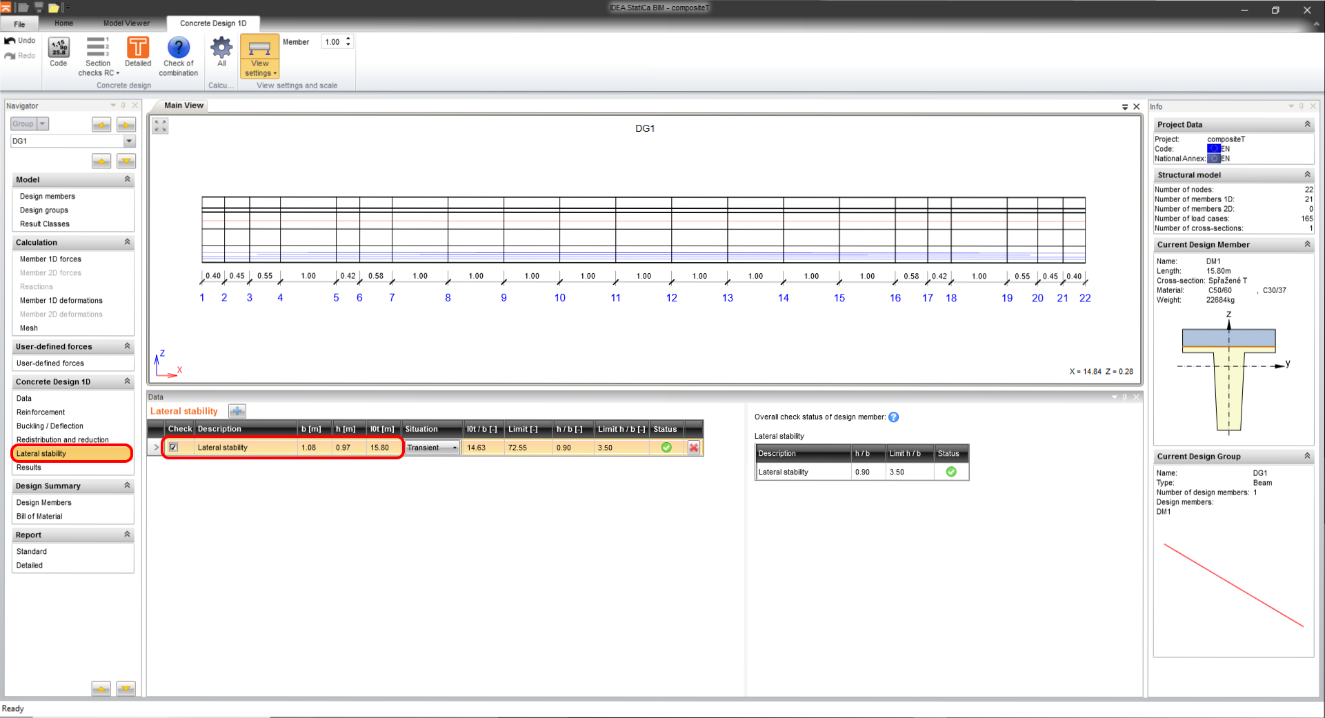 The lateral stability check is a really important part during the stage of prestressing to prevent the snap-through point of the beam. Move to Lateral stability and set parameters for code-check.  Change the situation to Transient.