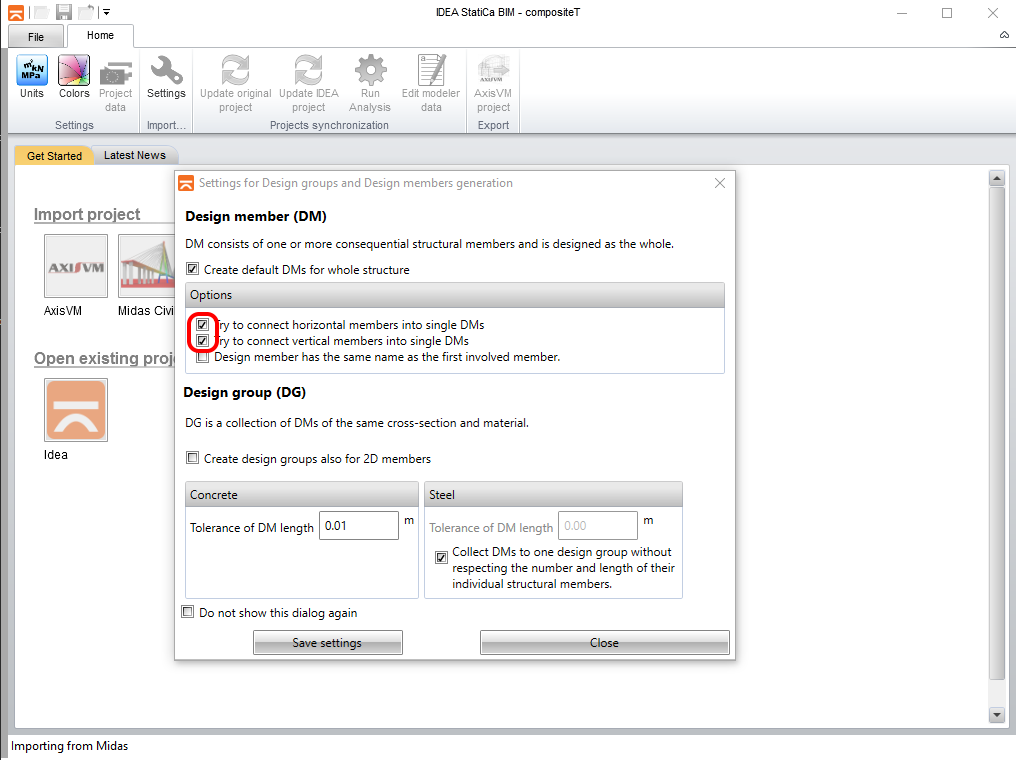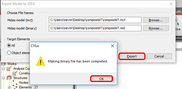 Select the path where will be saved the mct. and mid. files. Both files are necessary to save in the same folder. Otherwise, the import to IDEA StatiCa BIM won't be accessible.