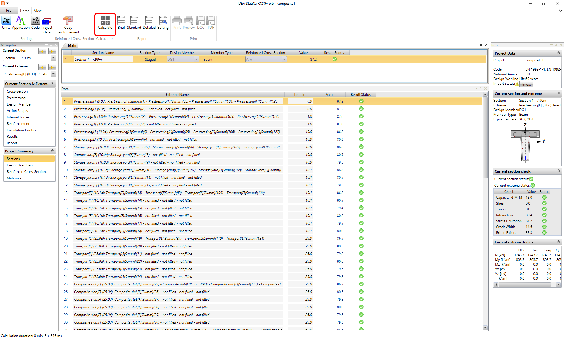 Switch to the Results card and the calculation will be automatically started. You reach detailed results if launch module RCS by clicking on the Detailed button.