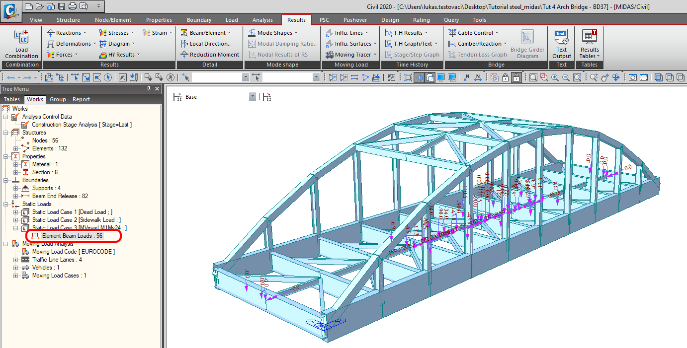 Static load case from moving load
