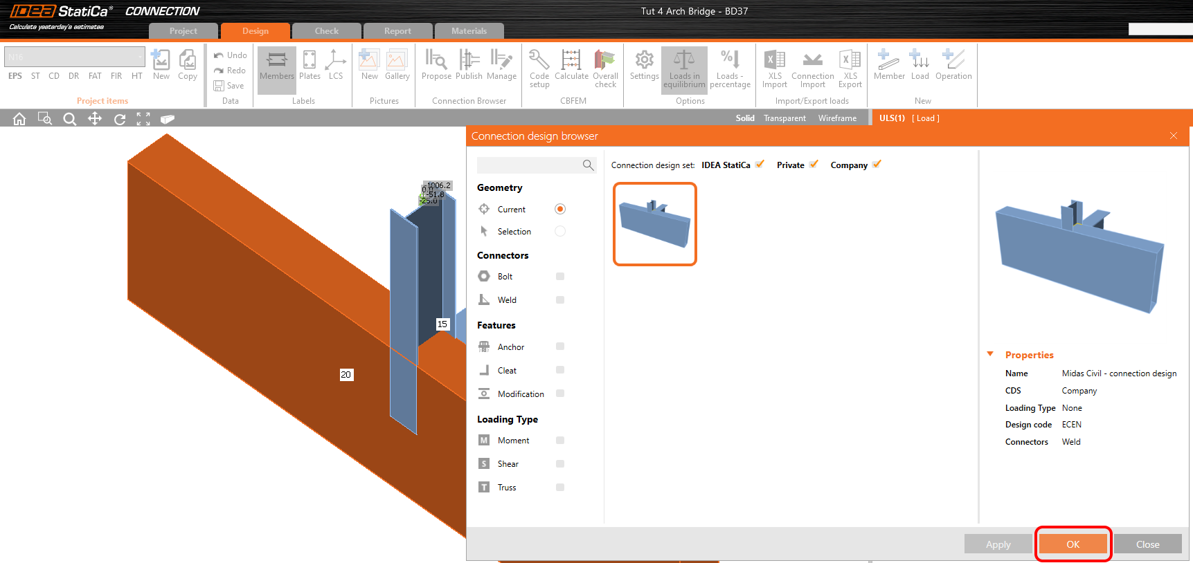 Midas Civil BIM link for steel connection design