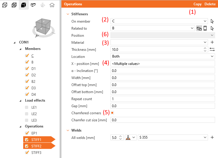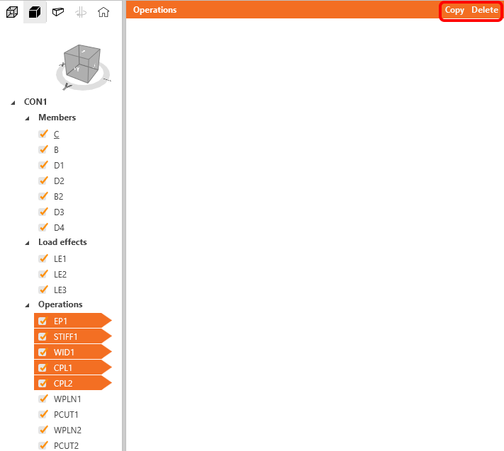 Thanks to the property grid, items and objects such as Members, Load effects, Operations, Temperature, and Dissipative items can be selected in logical groups. With one click, all user actions, such as changing the offset in members, changing material in operations, copying and deleting loads, etc., can be done for the whole group.
