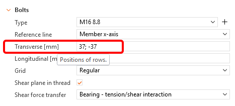 This parameter will set up the transverse distance between the bolts. Fill in the fields according to the provided picture.