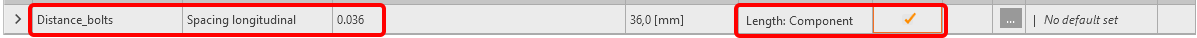 Address the name "Distance_bolts" as a further parameter. Enable visibility for actual parameter.
