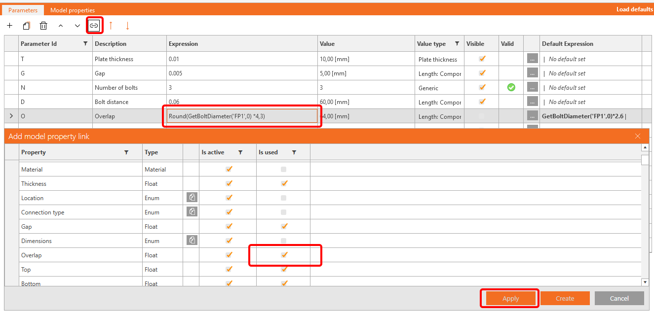 As we have only one bolt row, we can calculate the plate overlap as bolt diameter x 2 x 2 according the EN code. To set it properly, visit the link to Reference Guide, positioned at the bottom of the Parameters window.