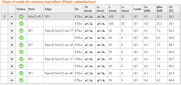 Weld: Weld checks are passing according to both methods with sufficient reserve.
