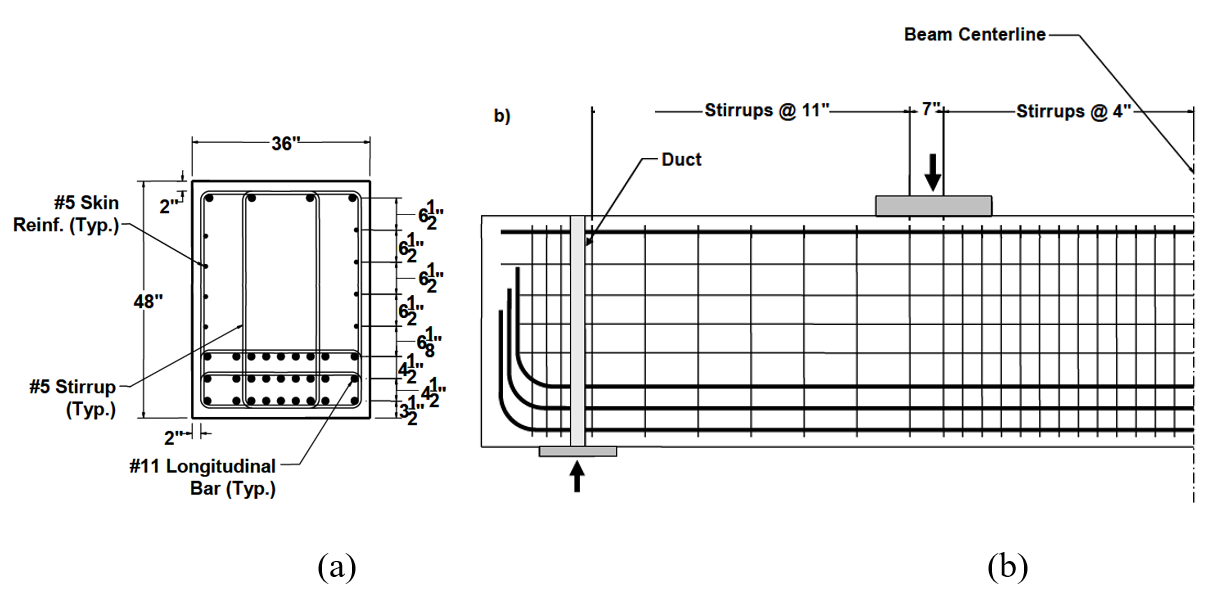 Figure 2.13: Shear span 1A: a) cross-section, and b) elevation (Huizinga, 2007).