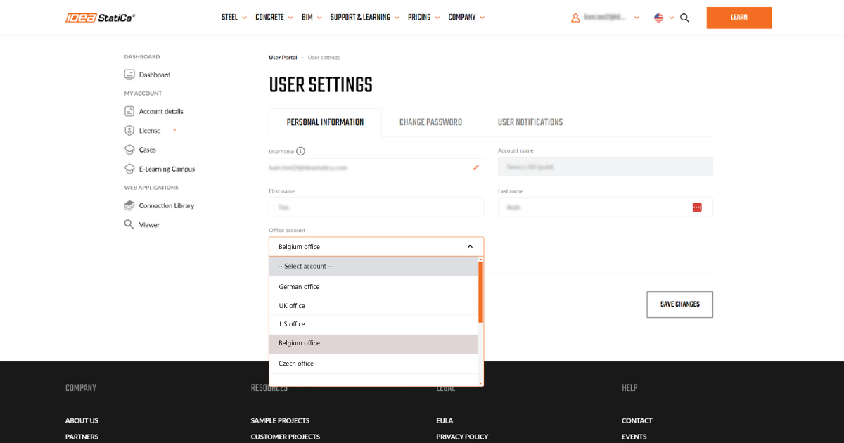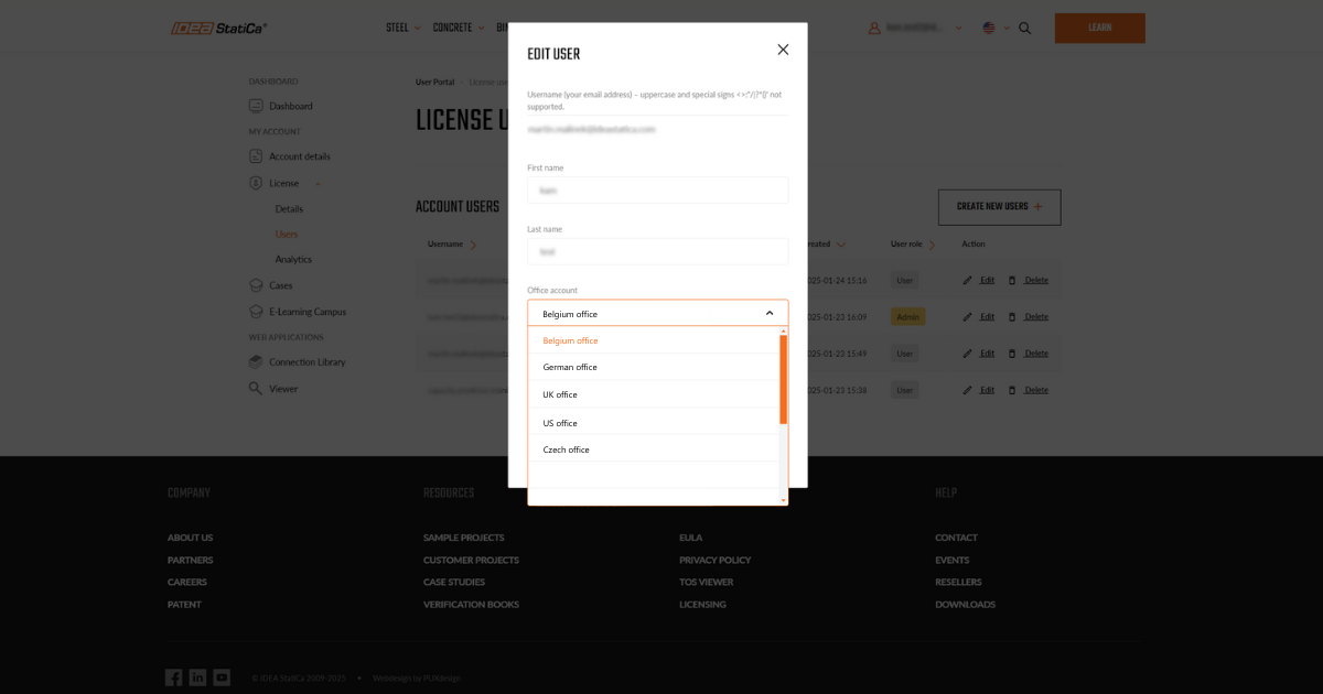 Besides clearer user management, this also leads to a time reduction in the processing of cases, as the proper support office can be selected faster on the side of IDEA StatiCa support.