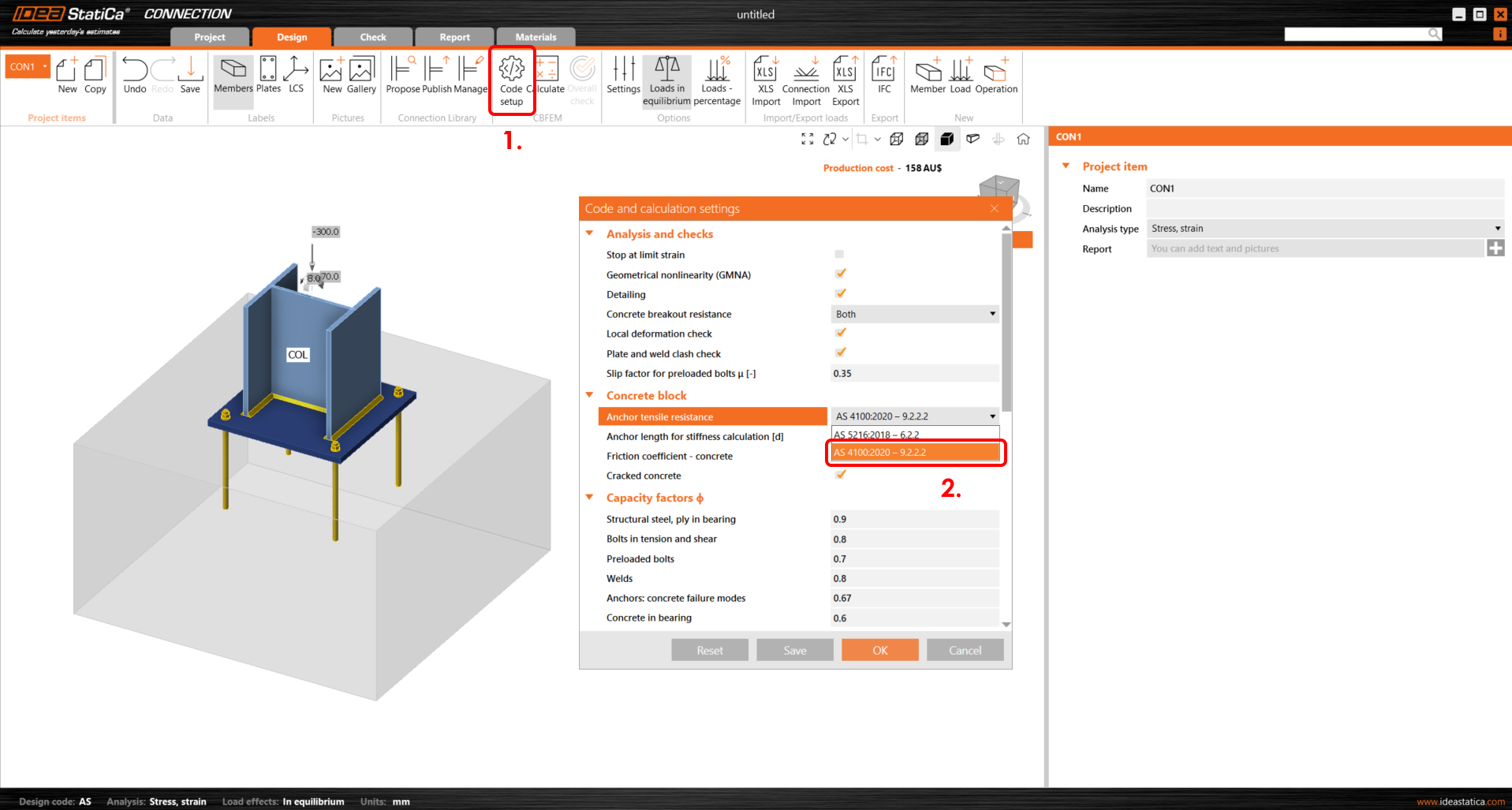 By default, the Overstrength factor is set to 1.4 and can be changed in the project Settings/Design/Autodesign/Overstrength factor.