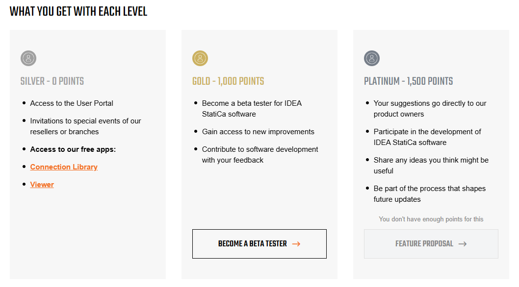 These score categories allow users to participate in IDEA StatiCa development through Beta testing or Feature request reporting. In addition, it enables the personalization of online content suggested to specific users.