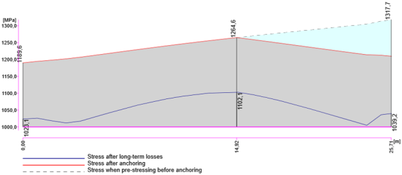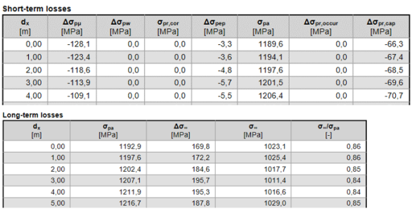 Both, long-term and short-term losses can now be displayed in the module for the design of prestressing tendons. All results related to tendon stress losses can be presented graphically and also as tabular data for all sections on the beam member.