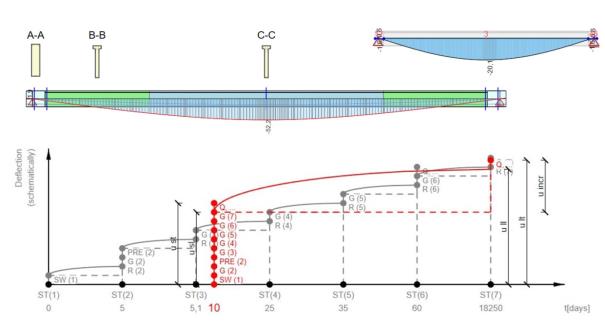 Calculation and checks of beam deflections have been improved. The effect of shrinkage was implemented into deflection calculation of both reinforced and prestressed concrete beams with non-symmetrical reinforcement in the cross-section. Now, non-linear deflection of reinforced concrete, pre- and post-tensioned beams can be calculated considering the effect of creep, shrinkage and cracks.