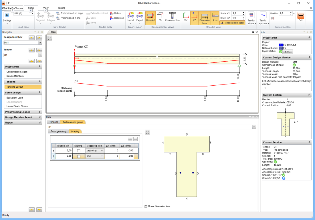 Draped strands are now added into Tendon designer. We have a possibility to change eccentricity along the length of prestressed strands.