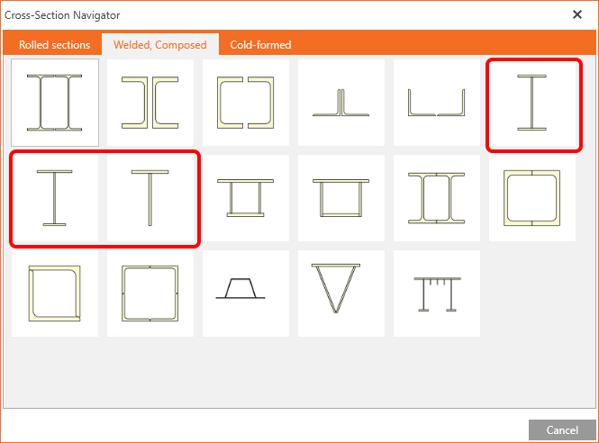 - Stiffener – can be added automatically to welded cross-sections too. The stiffener itself changes its dimensions according to the smaller flange now.