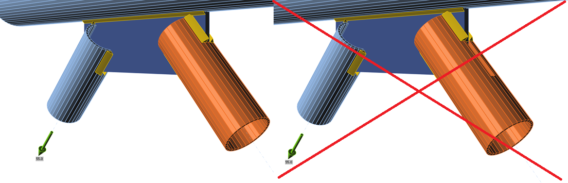 - Hollow member cut by a plate – for the gusset plates, the true contour is cut into the hollow member now.
