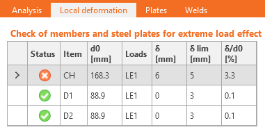 Local deformation check for hollow members