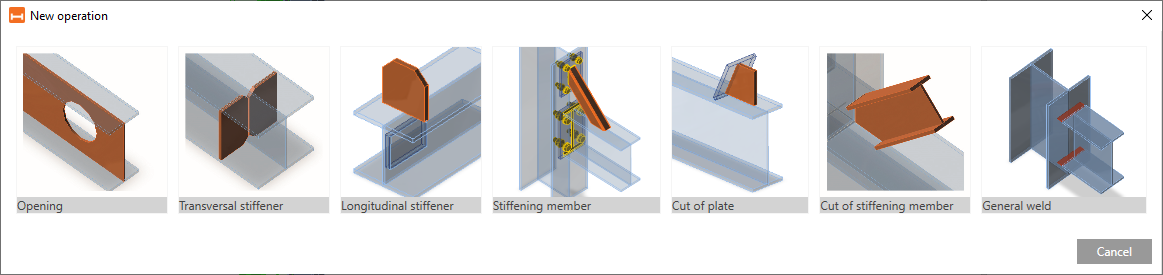 Manufacturing operations in the previous version of the Member application were limited. From now on, the full designing potential is provided with five new manufacturing operations such as the cut of a member, cut of a plate, stiffening member, general weld, and transversal stiffener.