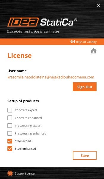 • With the release of version 20, IDEA StatiCa will send Admin credentials to this email. The license will have entitlements based on purchased products and seats.