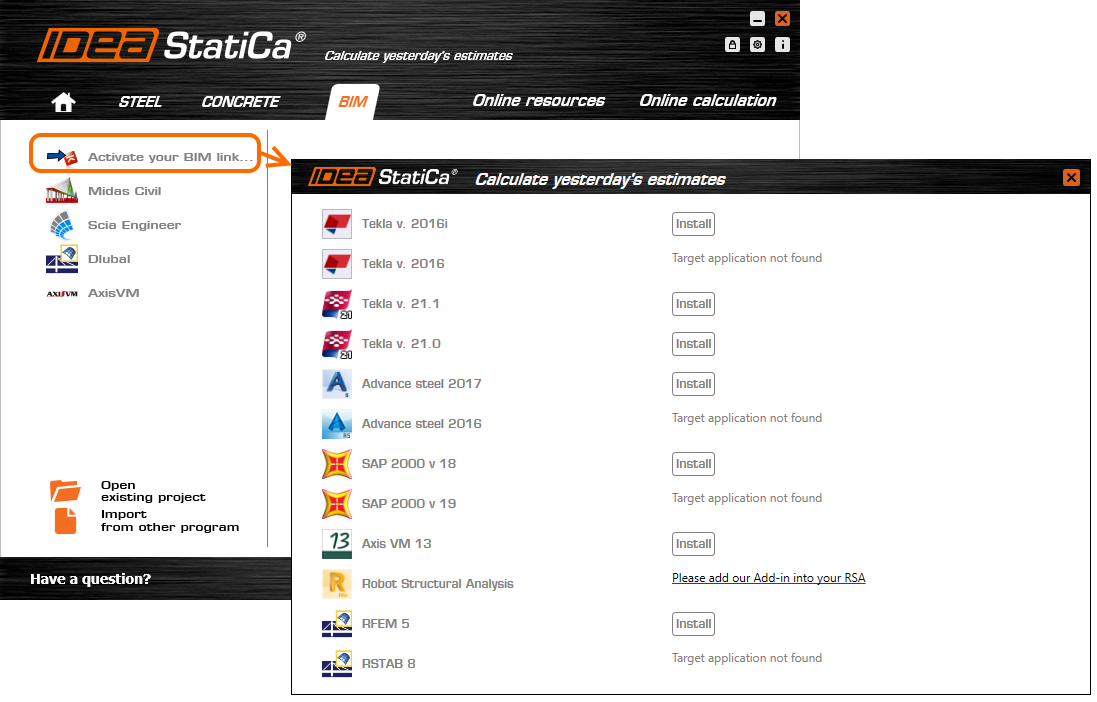 • New tool for activating BIM links – directly from the starting application of IDEA StatiCa