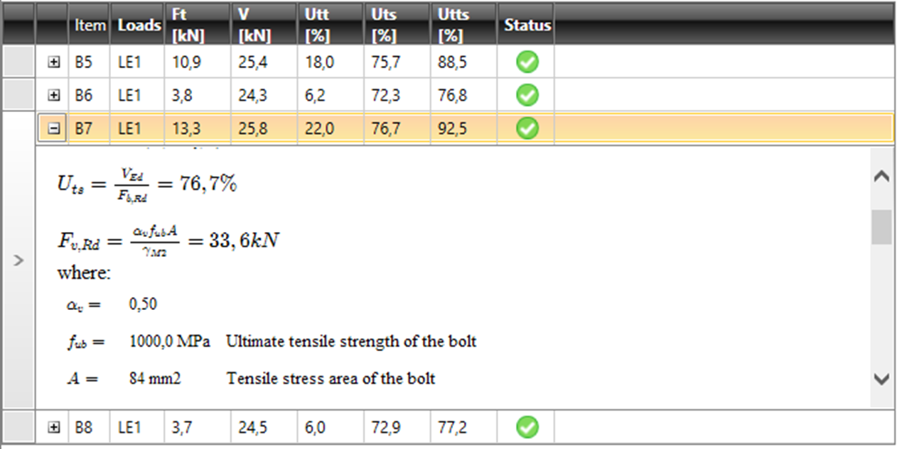 IDEA StatiCa Connection already provided all necessary code check results in table format, where the user can see all the input values and the final results of checks, like for example checks for bolts and welds. But it is also very good to know for transparency reasons what is behind those numbers, meaning which formula is used, and which article of code has been applied. This was a frequently asked feature from our users and we are happy to say that is is now available.