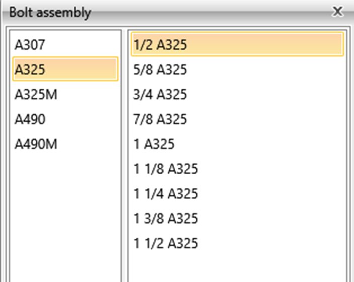 • Default items for templates - material, bolt, cleat