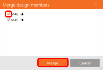 In Checkbot you can merge separated members into a continuous one. Merge both supporting beams as related members. Select the related member M-49, click the Merge command.